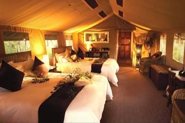 Immerse yourself in the African bush with our luxury tented accommodation, thoughtfully designed to offer privacy, comfort, and a sense of escape. Each spacious safari tent is air-conditioned and features comfortable beds dressed in high-quality linen, as well as private decks with camping chairs—perfect for quiet moments surrounded by nature.