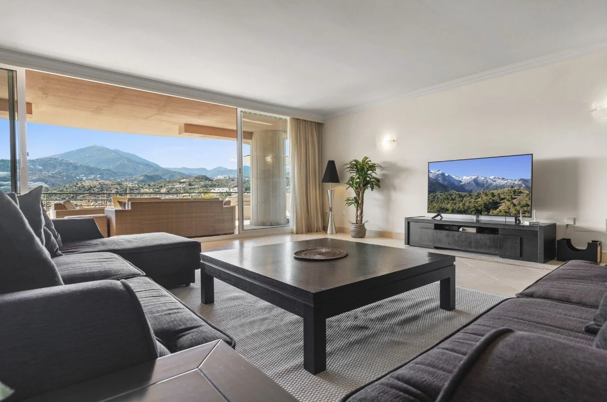 A stunning, spacious apartment on Spain’s famous Costa de Sol, overlooking the beautiful Magna Golf and Country Club in trendy Nuevo Andalucia. An easy drive from the beach and stylish Marina of Puerta Banus.